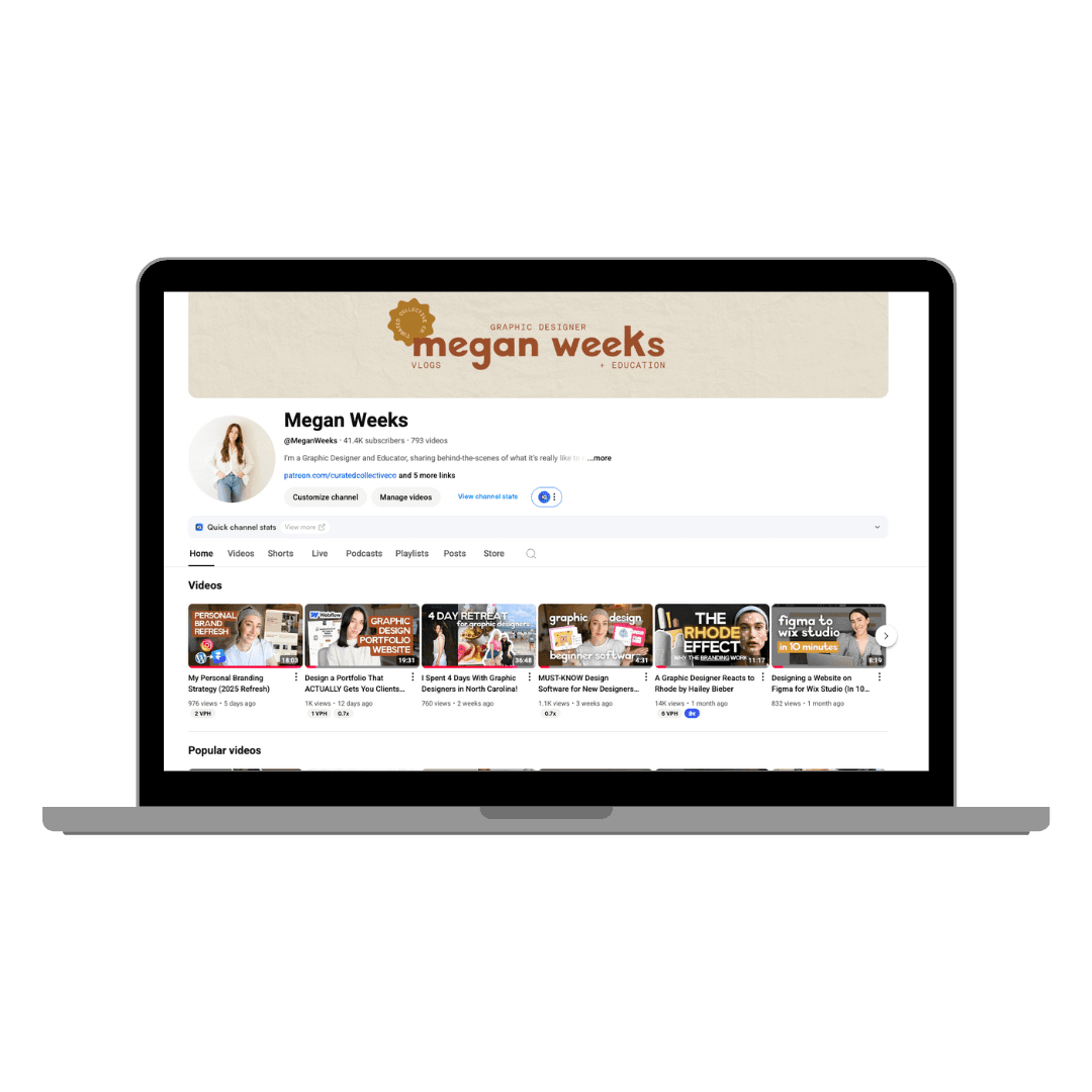 I share weekly YouTube videos that give you a face-to-face look into my design process and business journey, like we’re learning together over coffee. For a deeper connection, my Patreon community offers exclusive tutorials, design sprints, and live calls—a space to grow, create, and connect with other creatives.