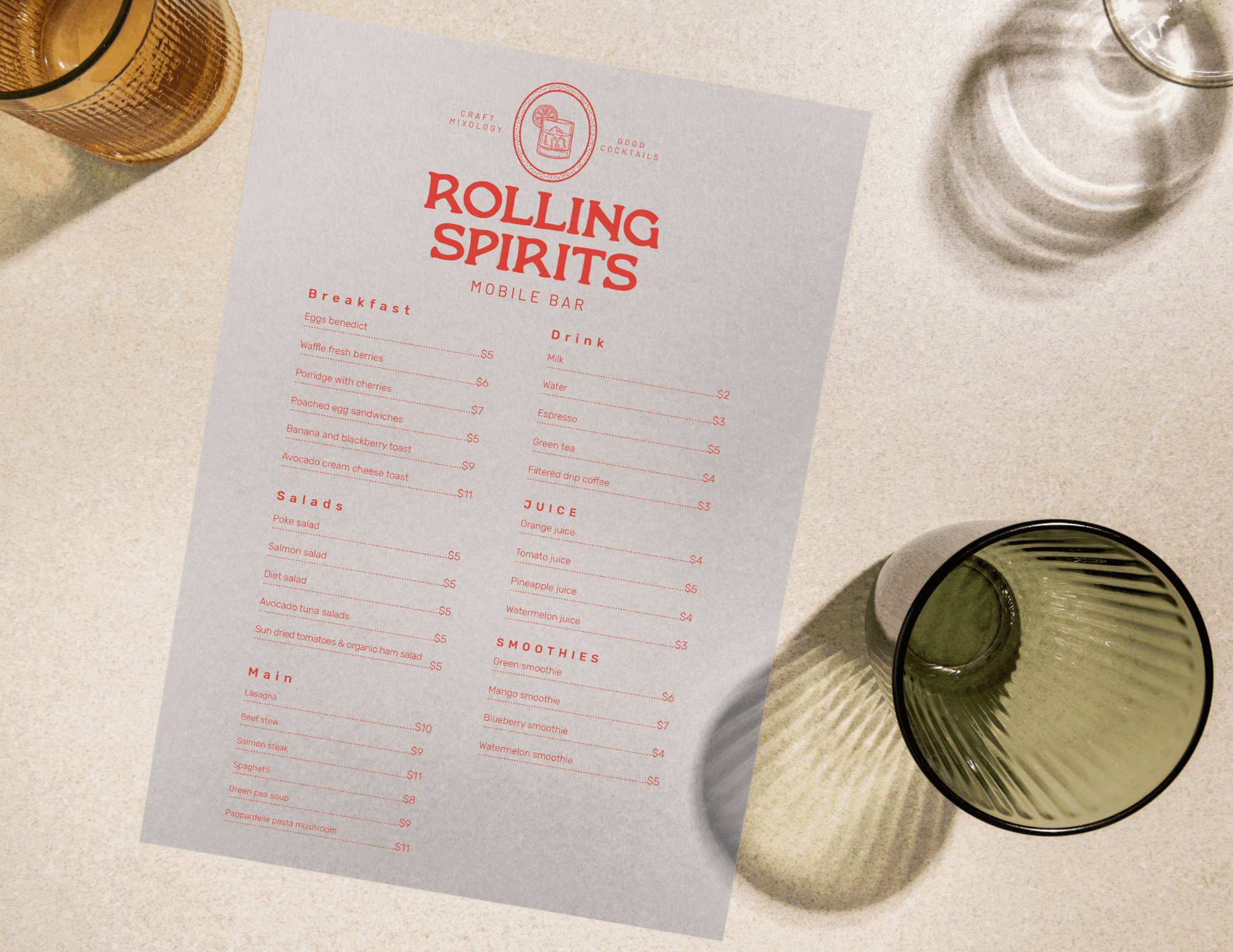 Working with Rolling Spirits Mobile Bar was such a fun and flavorful project! Their vision was bold and energetic with an Italian aesthetic, a mobile bar that didn’t just serve drinks, but brought personality, style, and a little magic to every event.